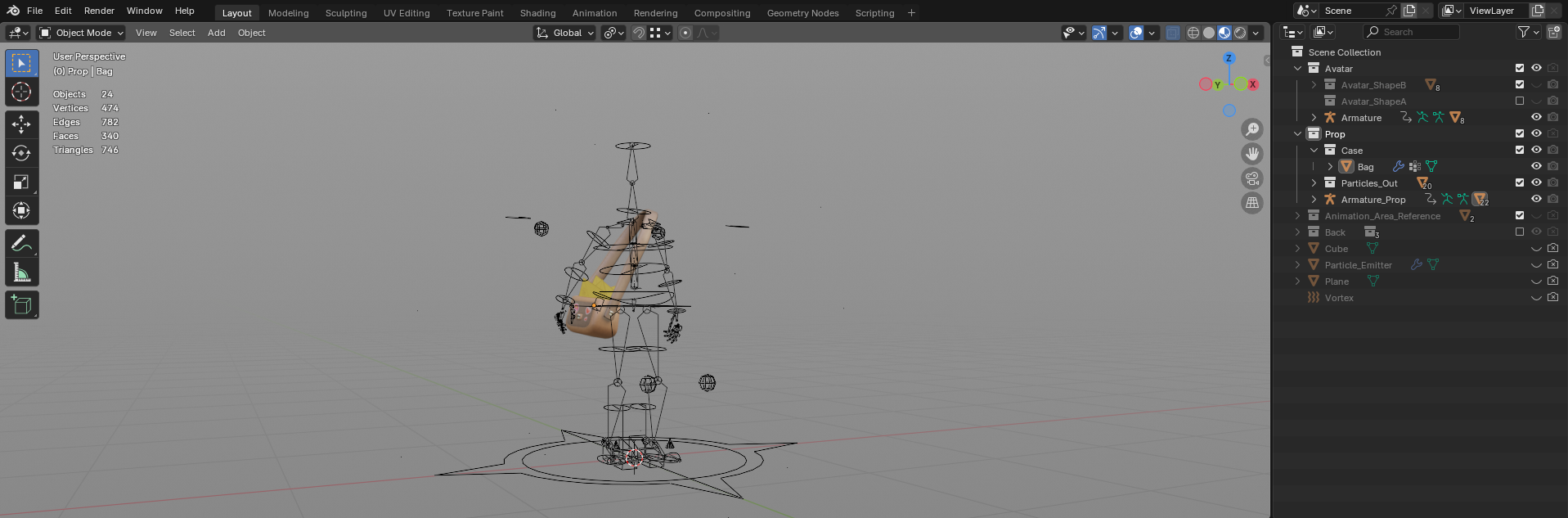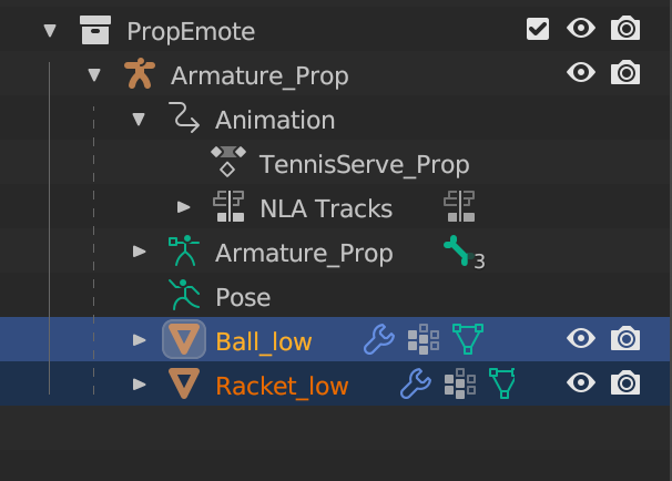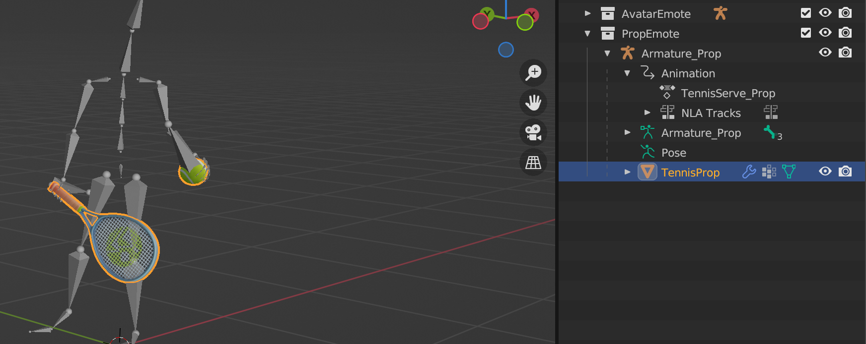 • The emote must have one animation for the avatar and one animation for the prop. Currently multiple animations are not allowed.