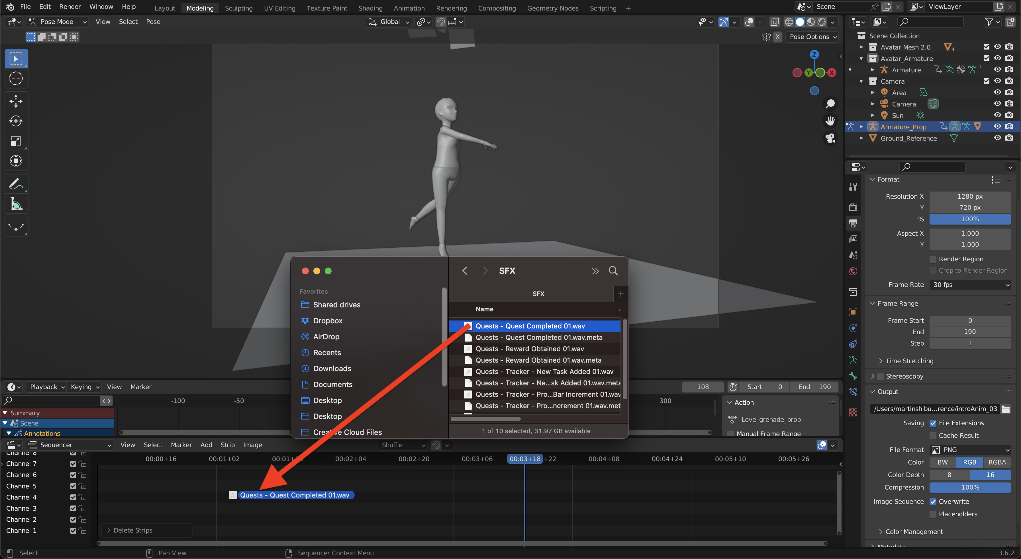 Once this step is completed, use your video as a reference to create the corresponding sounds using your preferred sound editing software. Ensure that the video sequence matches the animation’s framerate of 30 frames per second (fps)