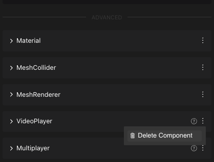 💡 Tip: The steps above can also be repeated with an item that has a Swap Material component, to turn any 3D model into a video screen. Configure the Texture section inside the Swap Material component to point to the video player entity.