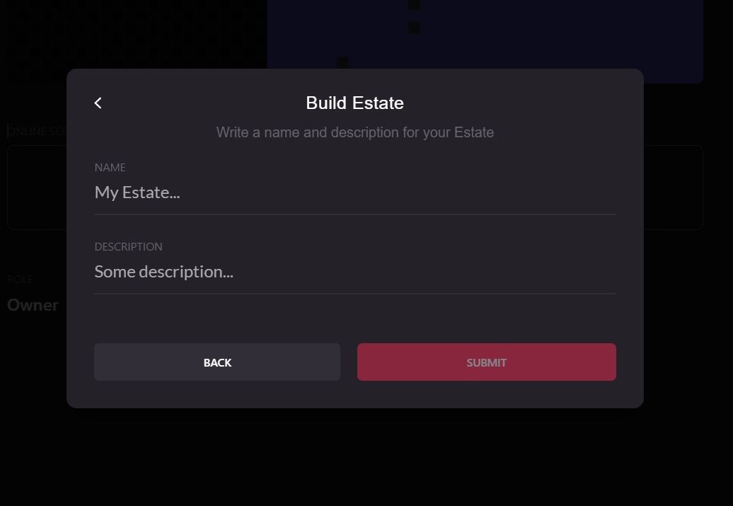 Enter a name and description for your Estate. These details will be publicly displayed in the Atlas, just like the name and description for any individual parcel.